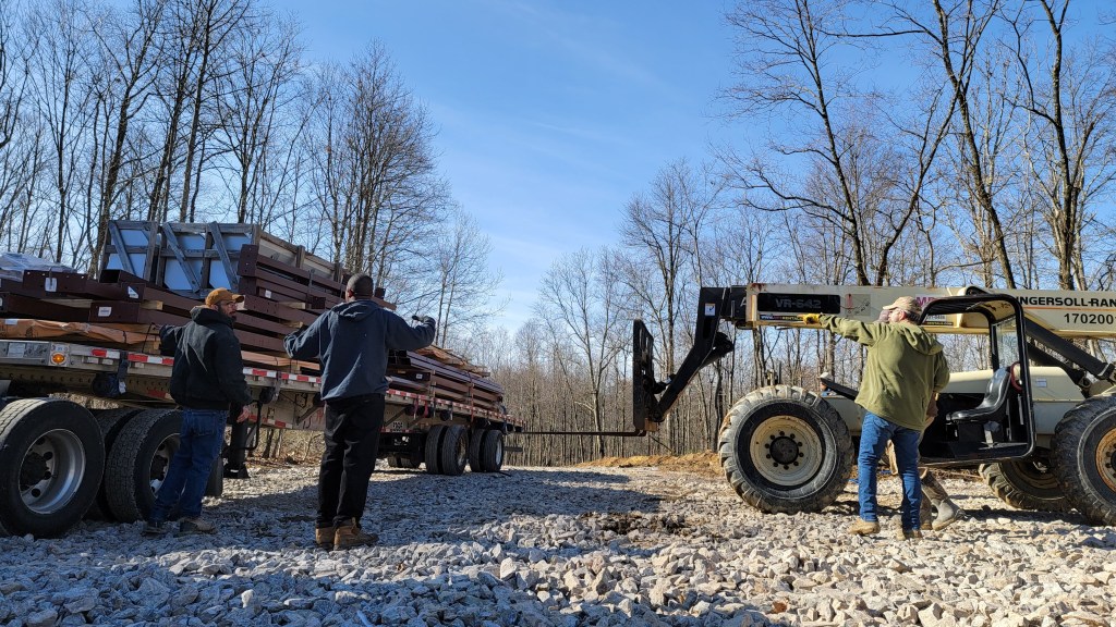 The 60’x40’ steel building that will house the woodshop/classroom was delivered on Valentines Day. Four of us and a large forklift offloaded the trailer into the parking area in about four hours. As of this past weekend—over five weeks later—all the pieces are sitting exactly where I left them that day. Unfortunately, it has been an unusually wet and warm winter, not accommodating to foundation digging and concrete work. Hopes are high that the crew will be able to begin soon, and we will see progress that is above ground level.